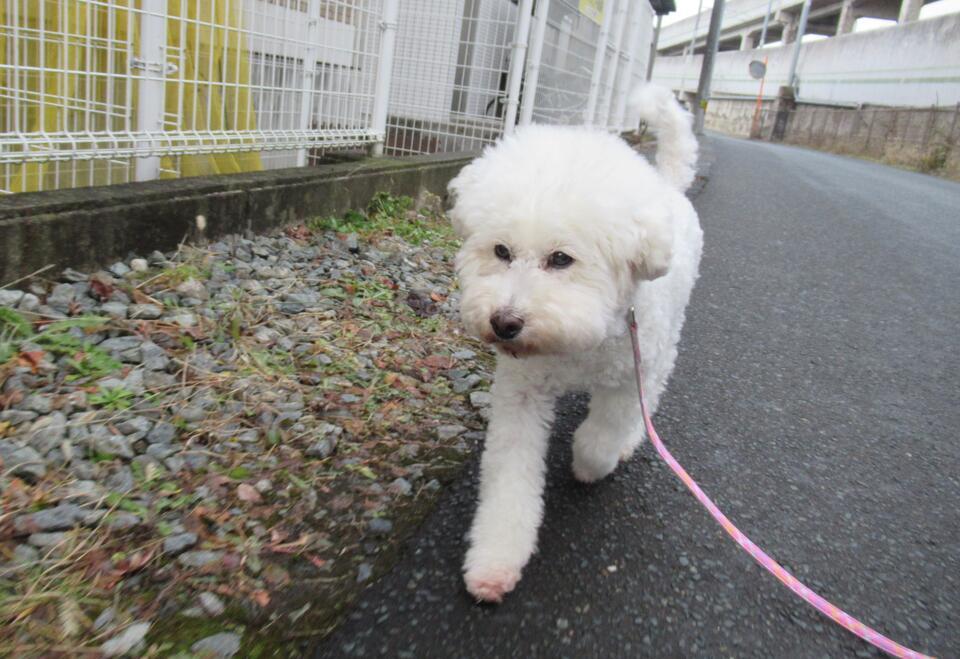 シュガーちゃんのお散歩は雪がチラチラ‥‥